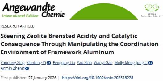 武科大网讯(通讯员李江江)近日,我校英国365集团公司/核磁共振与分子科学交叉研究院郑安民教授团队在《Angewandte Chemie International Edition》上发表了题为“Steering Zeolite Brønsted Acidity and Catalytic Consequence Through Manipulating the Coordination Environment of Framework Aluminum”的重要研究成果。郑安民教授、中国科学院精密测量科学与技术创新研究院易先锋研究员、香港理工大学Molly Meng-Jung Li教授为共同通讯作者,团队成员邢友东博士后为第一作者,365英国官网为论文第一单位。